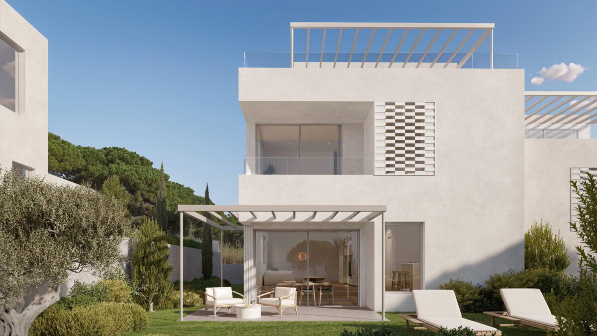 Morgana ofrece ocho viviendas unifamiliares que fusionan arquitectura mediterránea, eficiencia energética y materiales sostenibles. Con hasta 292 m² construidos, se presentan en dos tipologías: cuatro unidades de cuatro dormitorios y tres baños, y cuatro de cinco dormitorios y cuatro baños, todas con dos plazas de garaje. La disposición escalonada de la promoción permite vistas despejadas al Mediterráneo de todas las unidades y a la histórica Torre de los Encantados. Además, cada vivienda cuenta con terrazas y jardines privados, complementados con zonas comunitarias ajardinadas y piscina. La optimización de la luz natural y la ventilación cruzada aseguran espacios saludables y eficientes.